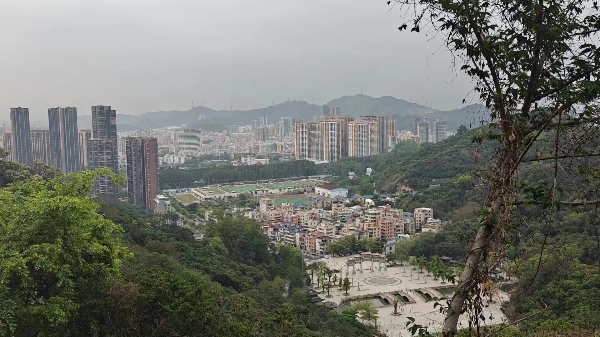 邊爬山邊觀景,步步登高望遠(yuǎn),入目滿是翠色。抬眼望去,燦爛陽光下,藍(lán)天白云,青山黛綠,一望無際,群山、湖泊、高樓……壯美的風(fēng)景在眼前徐徐展開,讓人心曠神怡,真是“人在山中走,猶如畫中游”。沿途雖然艱辛,但是秀美的山水風(fēng)景讓這段微苦的登山之旅有了溫馨清甜的味道。這也許就是“出發(fā)”的意義所在!