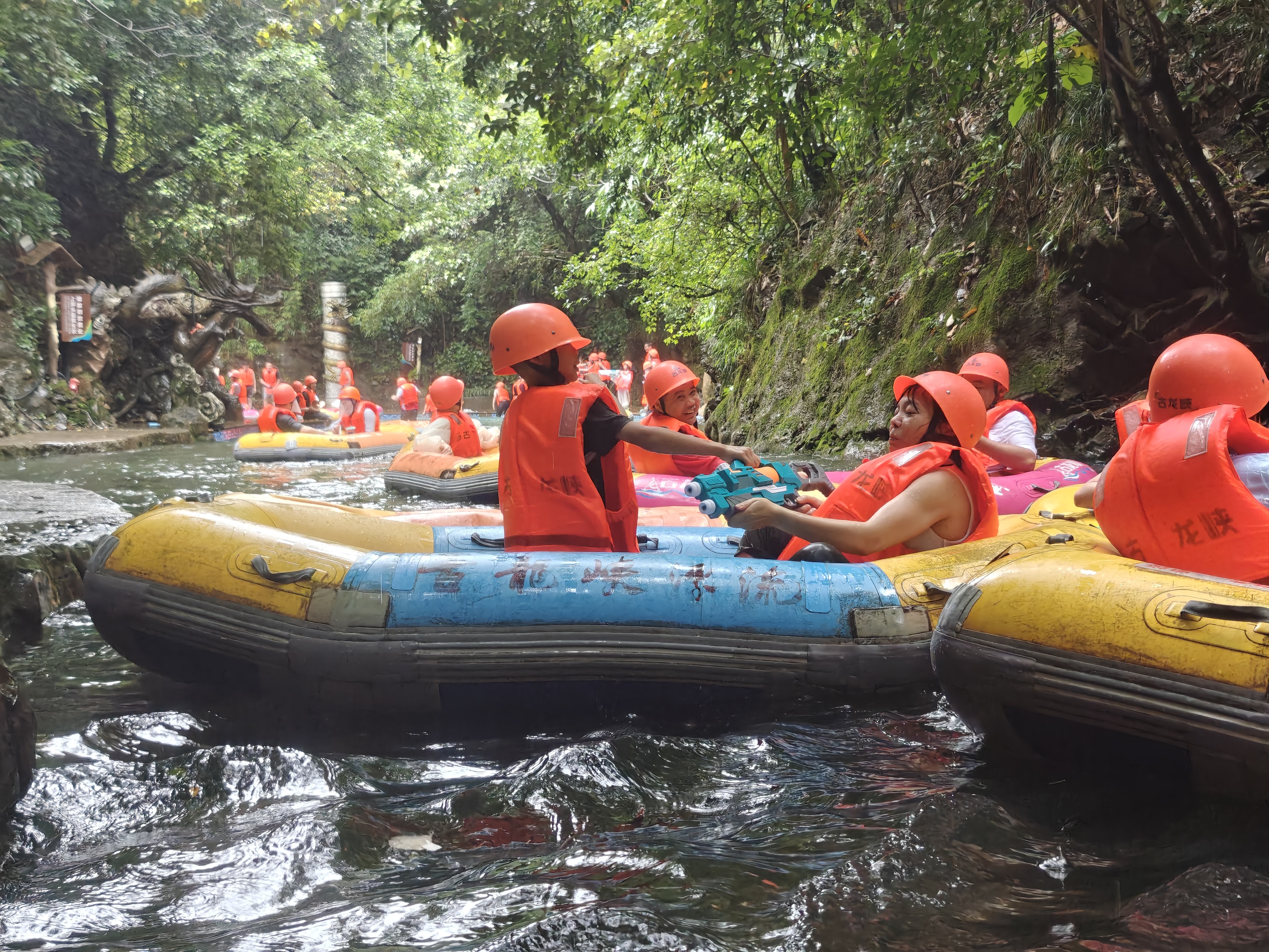 接下來,小伙伴們開始體驗古龍峽漂流啦!云開古龍峽,浪騰萬丈崖,峽深壁陡,落差巨大漂流刺激仿佛“浪尖上的過山車”。