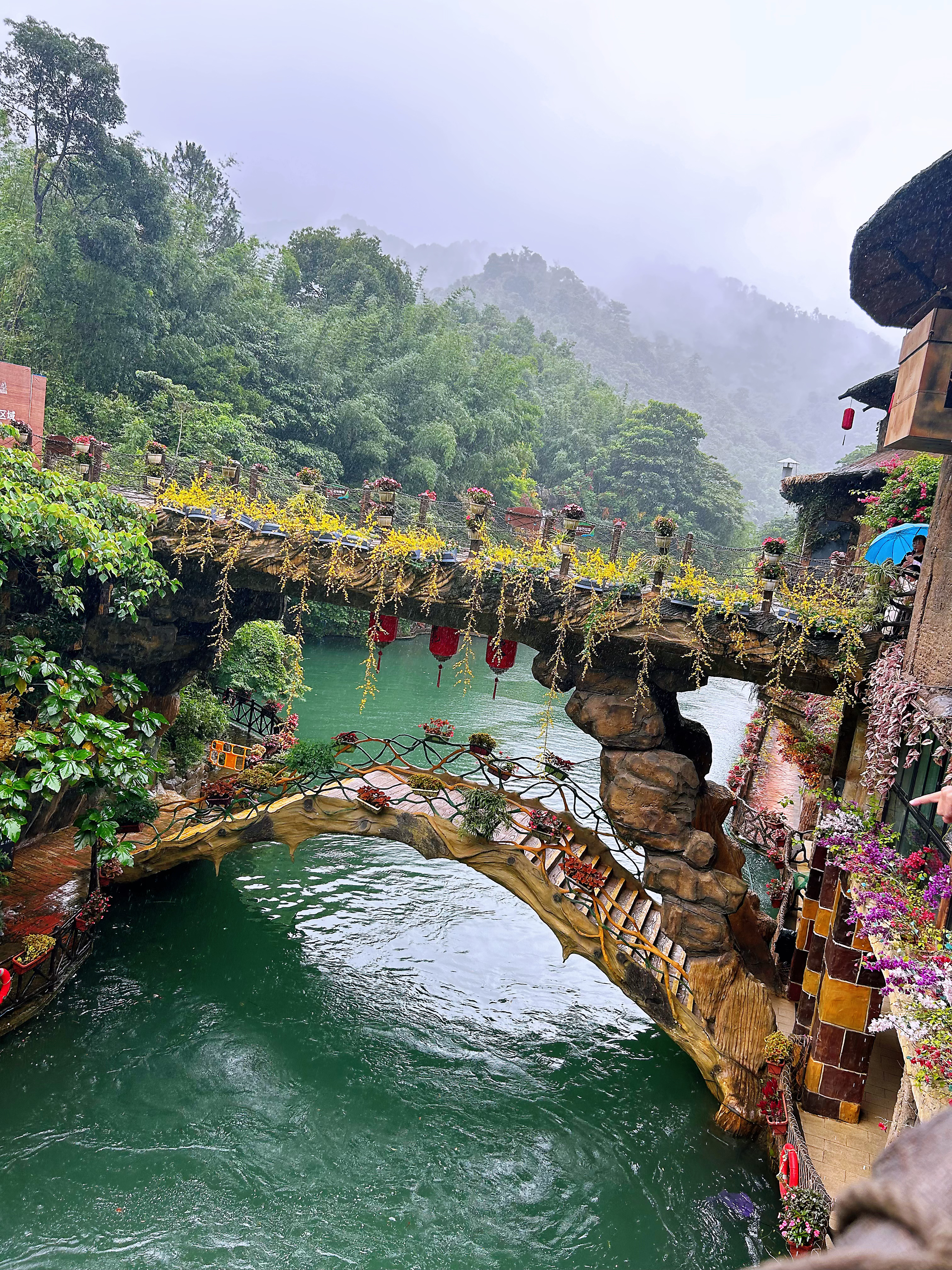 驚險刺激的漂流過后,小伙伴們來到了網紅河谷打卡,只見一河兩岸, 一步一景。河面碧波蕩漾,溪流、紅橋,錯落有致,相得益彰。