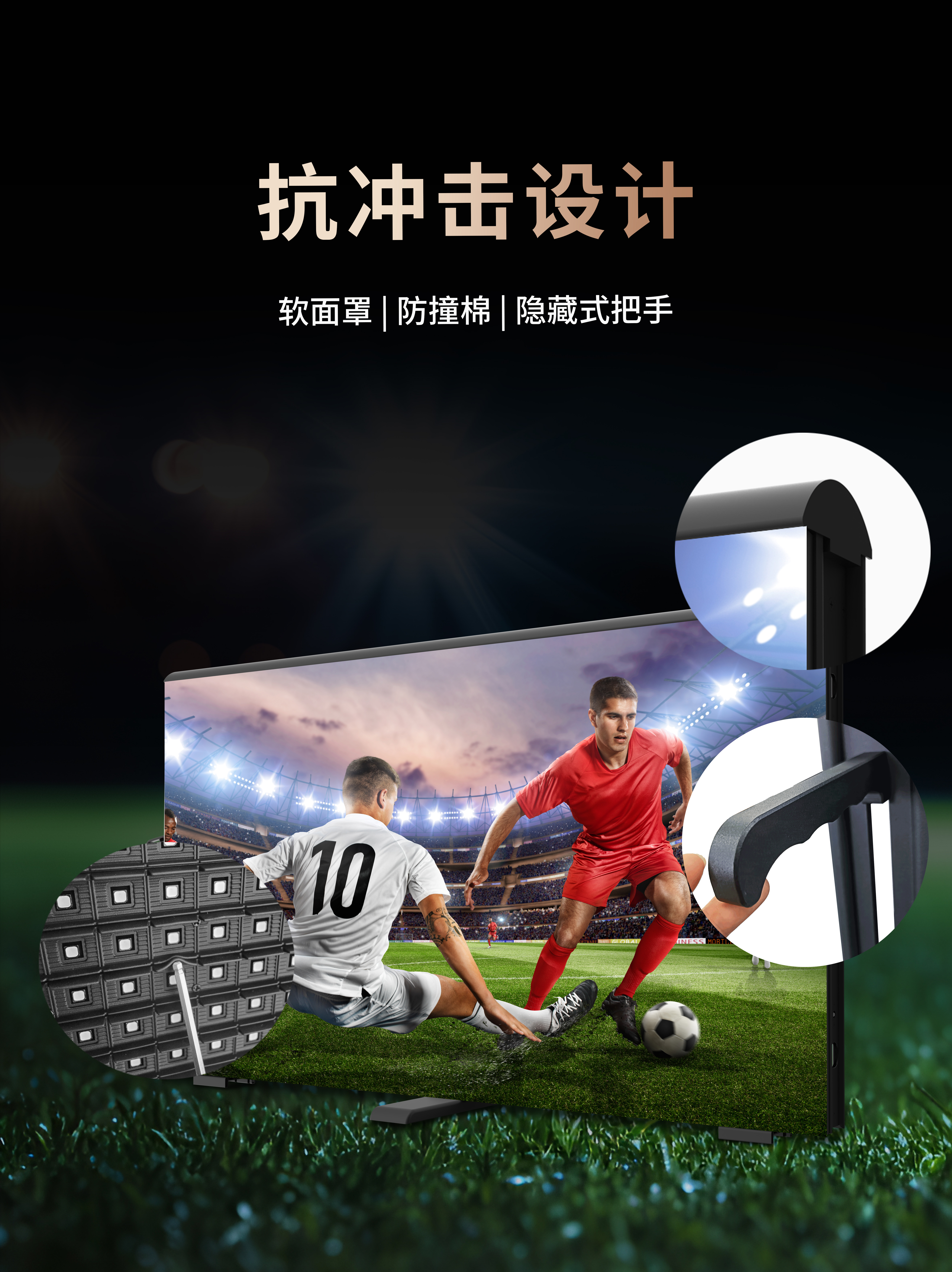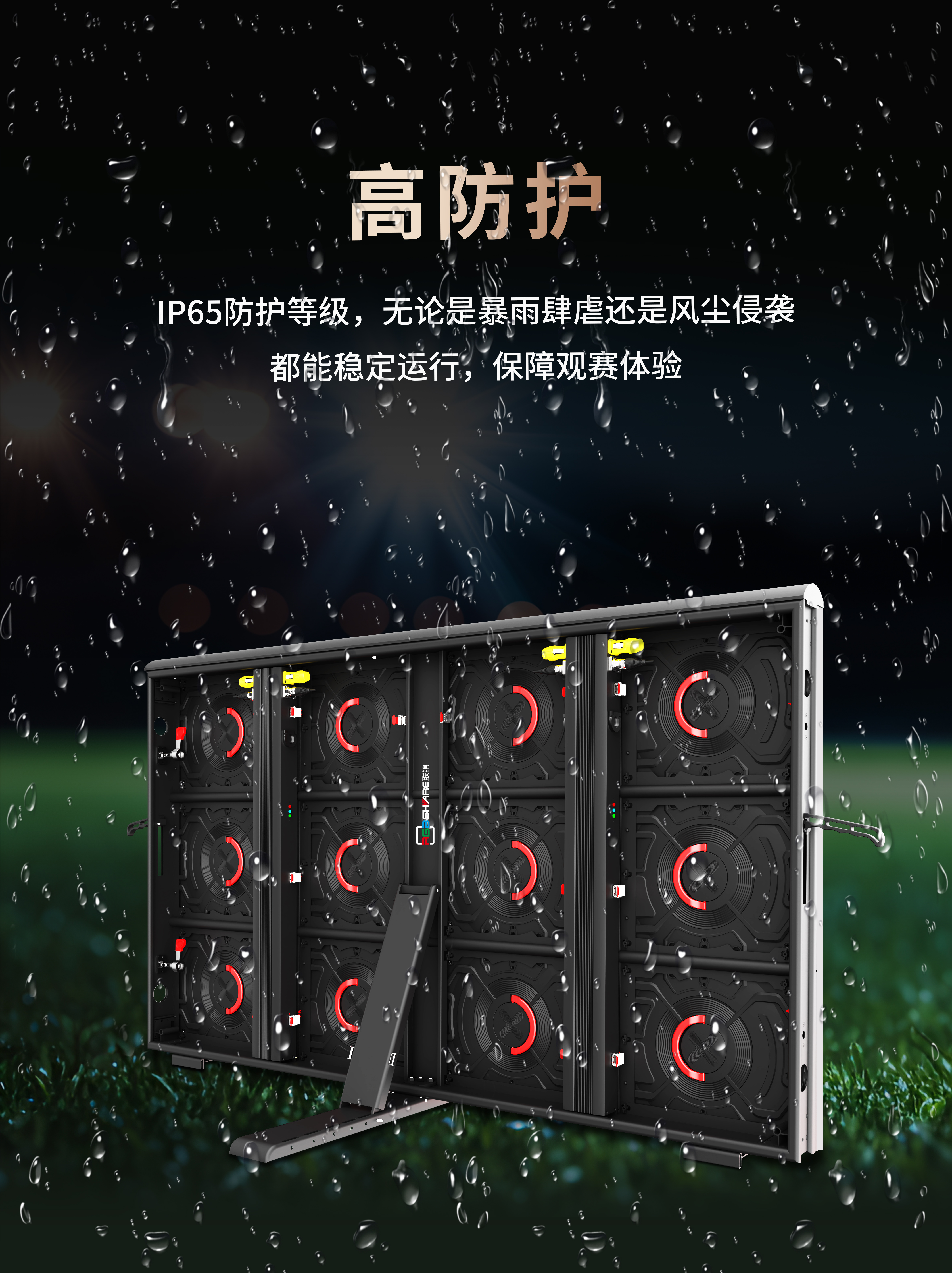 不僅如此,聯錦光電球場屏在整體結構設計上充分考慮了安全性。采用軟面罩及防撞棉設計,當運動員或設備意外碰撞屏幕時,能有效吸收和分散沖擊力,保護屏幕免受損壞,最大程度降低對人員的傷害;高強度鋁材箱體,超輕超薄,具備高效散熱、防潮、耐腐蝕等特性;IP65防護等級,可有效屏蔽戶外惡劣環境的干擾,無論是暴雨肆虐或風塵侵襲,都能穩定運行,保障觀賽體驗。