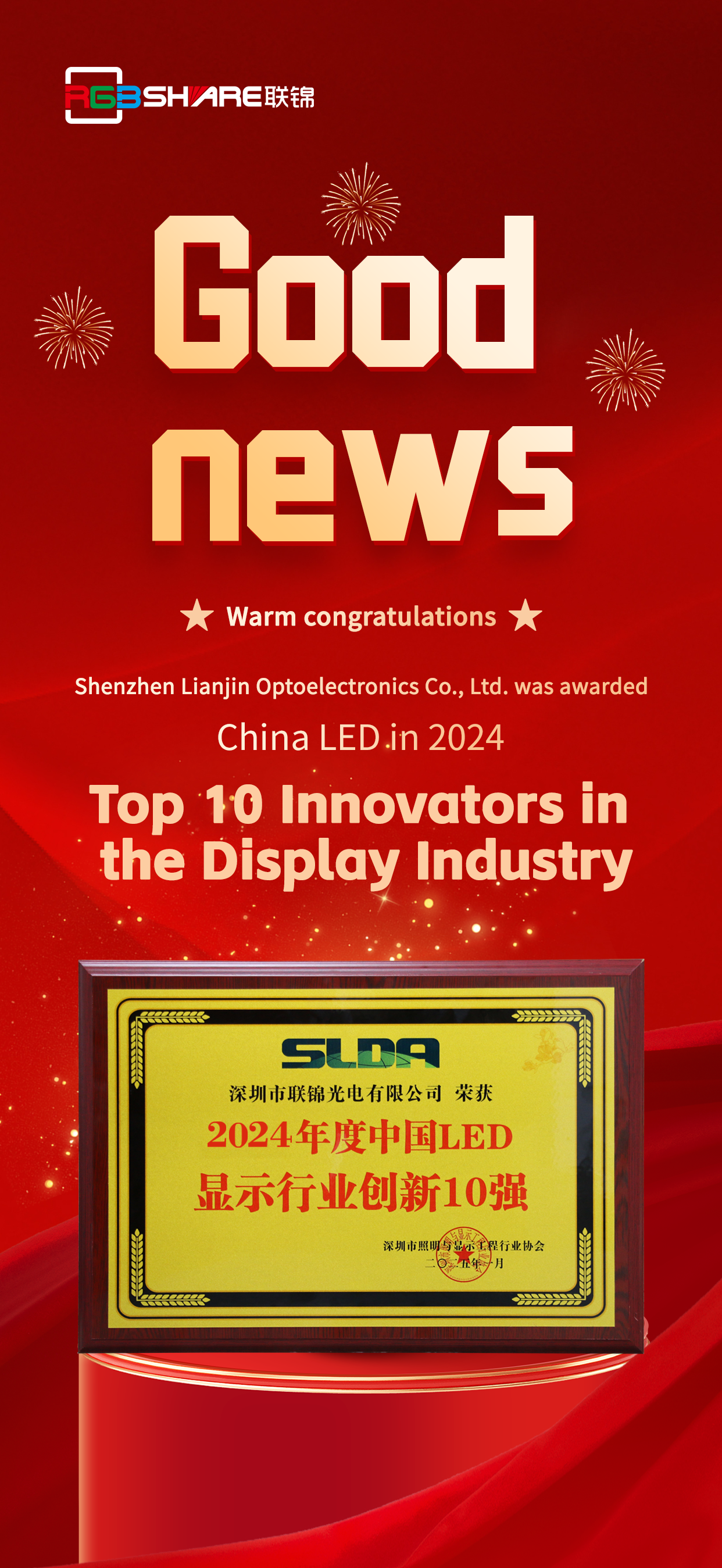 Lianjin Optoelectronics has been awarded the "Top 10 Innovators in China's LED Display Industry for 2024"!