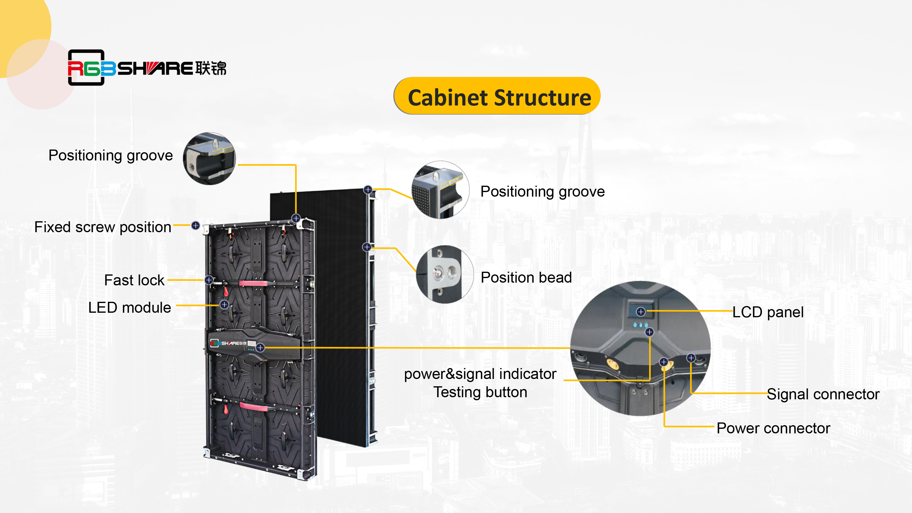 ?The LCD display on the integrated power box of cabinetshows the operating and signal situation.
