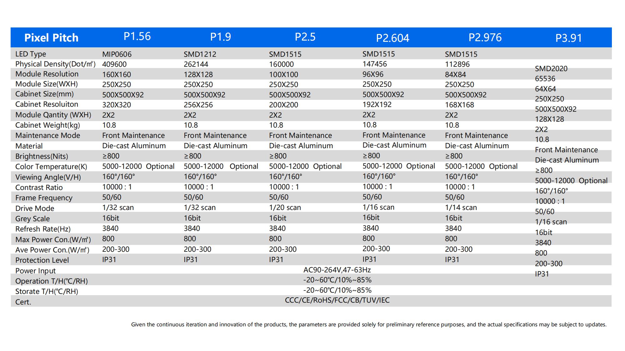 P1.56/P1.9/P2.5/P2.604/P2.976/P3.91