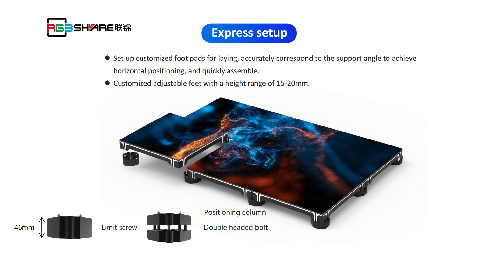 ?Adjustable foot design for quick leveling of screen flatness。