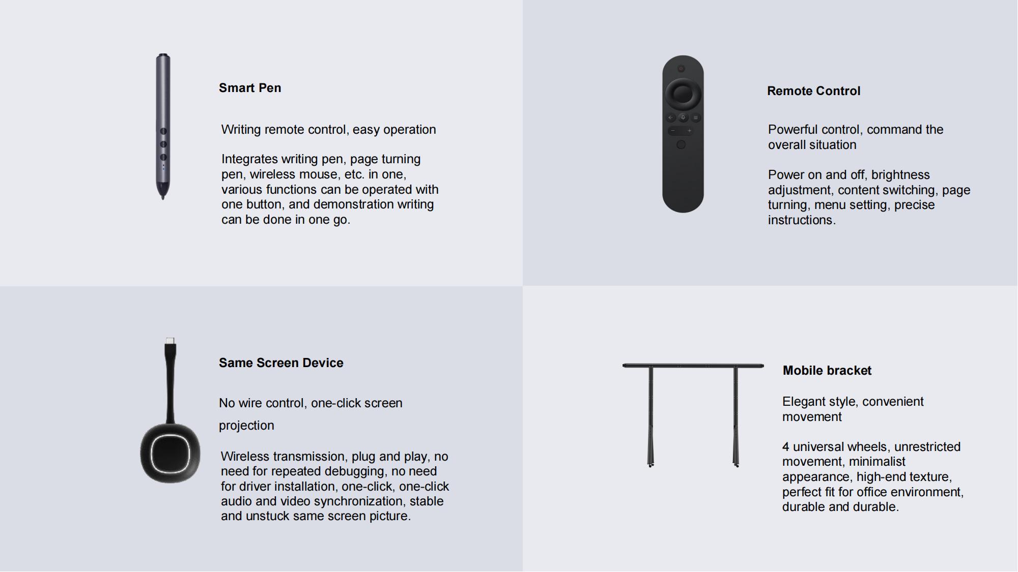?One click start, wireless screen projection, quarter screen;
