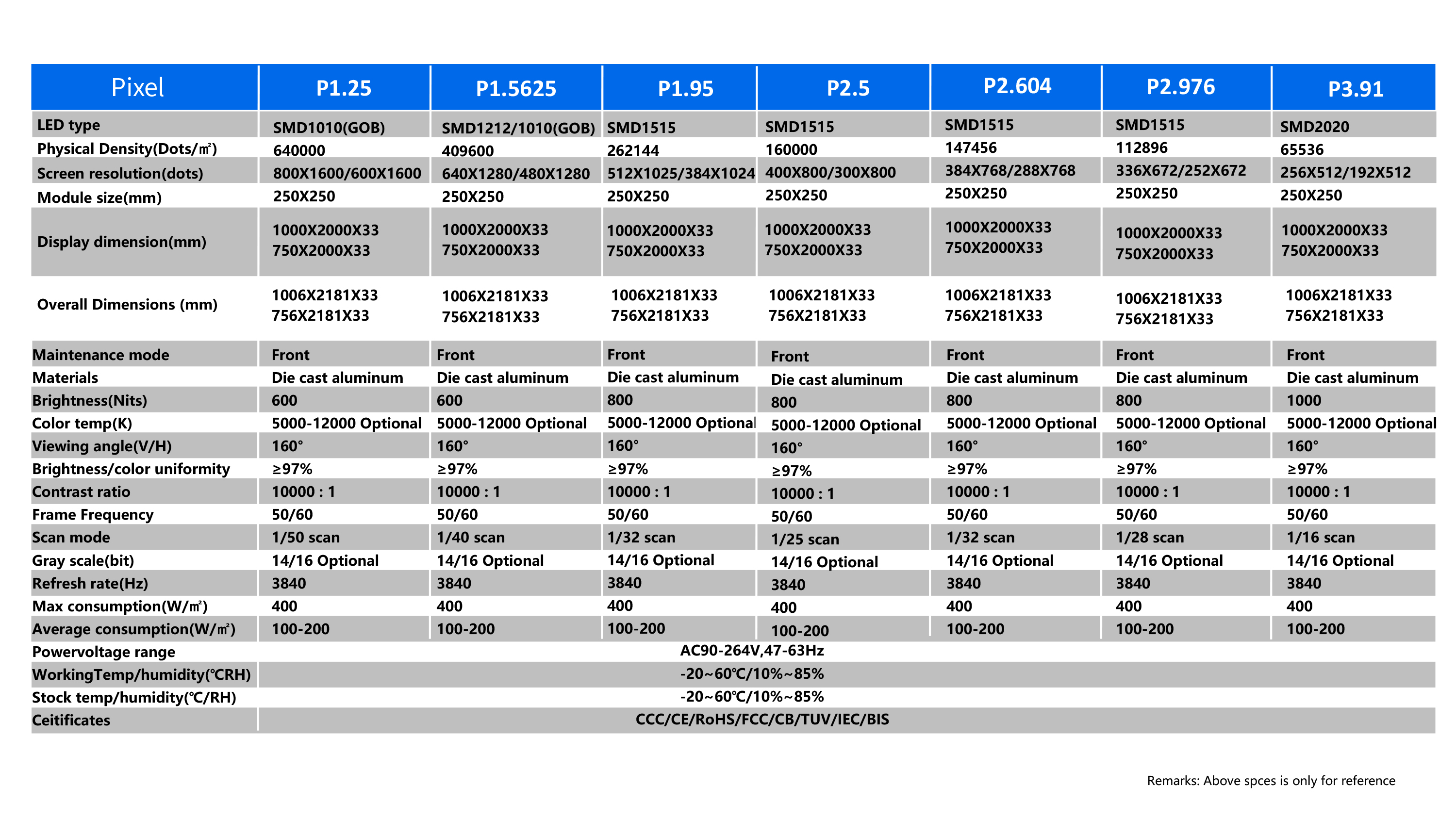 P1.25/P1.5625/P1.95/P2.5/P2.604/P2.976/P3.91
