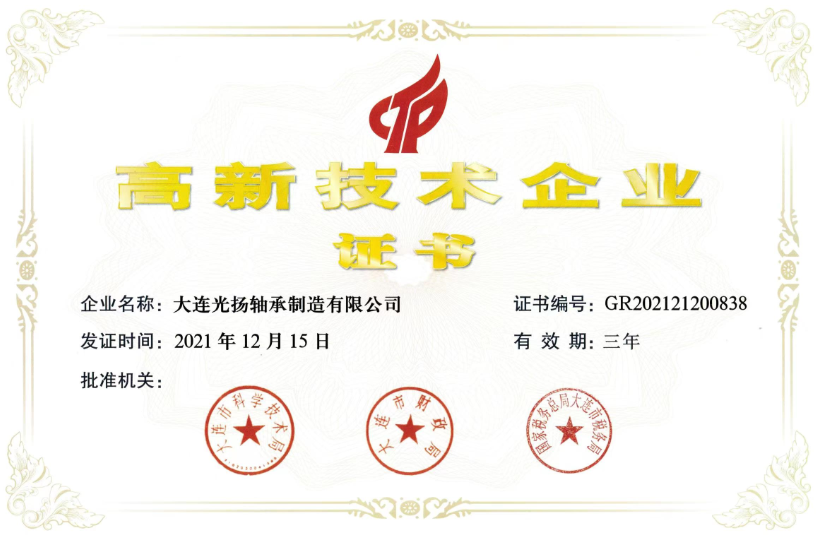 大連光揚(yáng)軸承制造有限公司順利通過(guò)“高新技術(shù)企業(yè)”復(fù)審認(rèn)定,并收到了大連市科學(xué)技術(shù)局、大連市財(cái)政局、國(guó)家稅務(wù)總局大連市稅務(wù)局聯(lián)合頒發(fā)的《高新技術(shù)企業(yè)證書(shū)》。 高新技術(shù)企業(yè)是國(guó)家為鼓勵(lì)高新技術(shù)企業(yè)發(fā)展,調(diào)整產(chǎn)業(yè)結(jié)構(gòu)和提升國(guó)家經(jīng)濟(jì)競(jìng)爭(zhēng)力而設(shè)立的專項(xiàng)資質(zhì)認(rèn)定,具有極高的含金量。 此次通過(guò)高新技術(shù)企業(yè)復(fù)審認(rèn)定,既是對(duì)光揚(yáng)軸承近年來(lái)發(fā)展的認(rèn)可,也是對(duì)公司科研創(chuàng)新能力和技術(shù)實(shí)力的充分肯定。